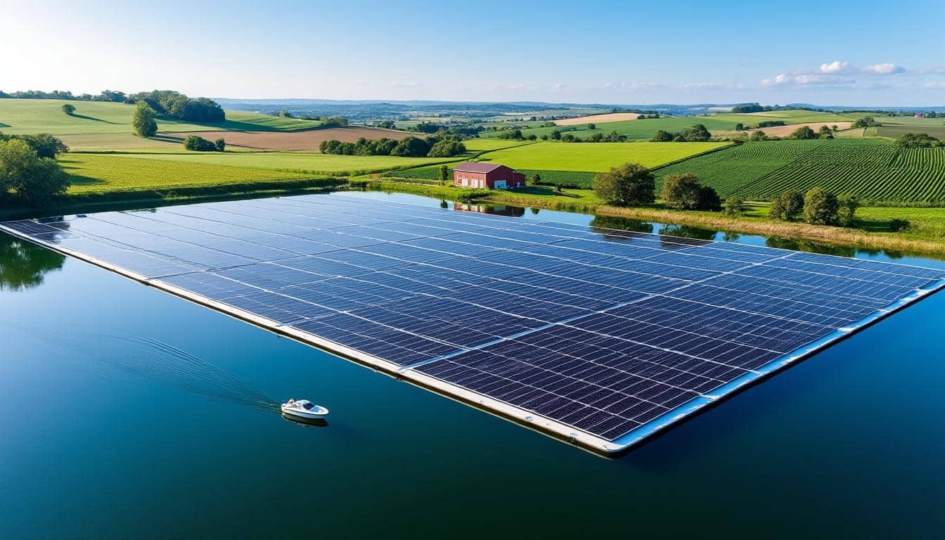 O panneaux solaires flottants posés sur une réserve d’eau agricole permettent de concilier production d’énergie et protection des ressources hydriques. Cette solution innovante s’intègre parfaitement dans le contexte de l’agricultura sustentável, où la gestion optimisée de l’eau est cruciale.